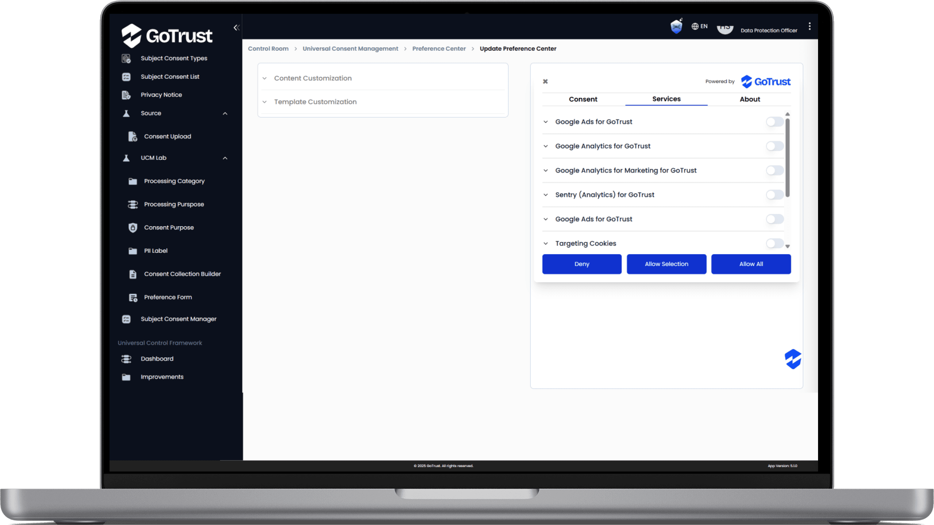 GoTrust provides intuitive preference centres where customers can easily manage their consent settings and update their preferences over time. This empowers customers to maintain control over their data and fosters a sense of ownership.