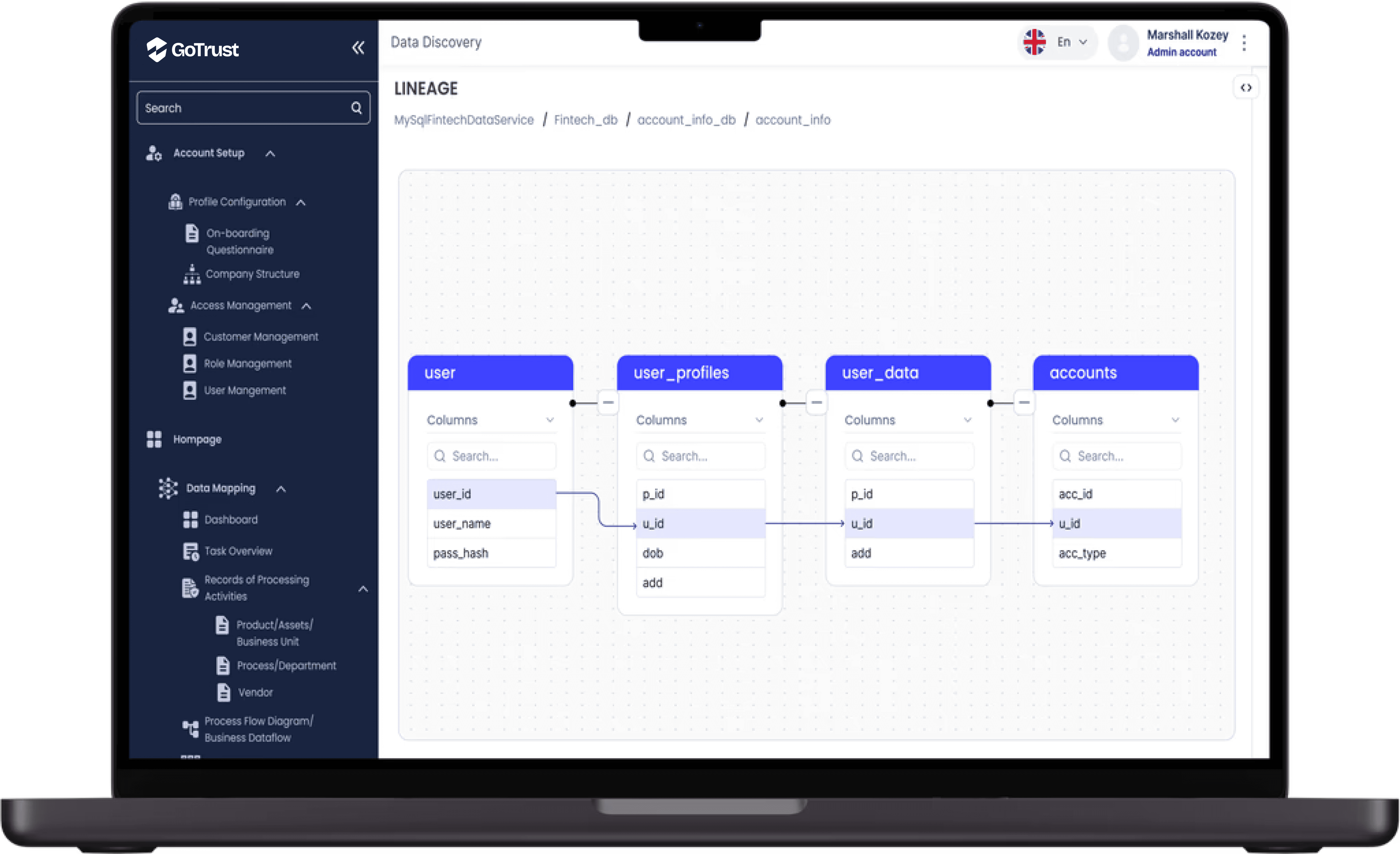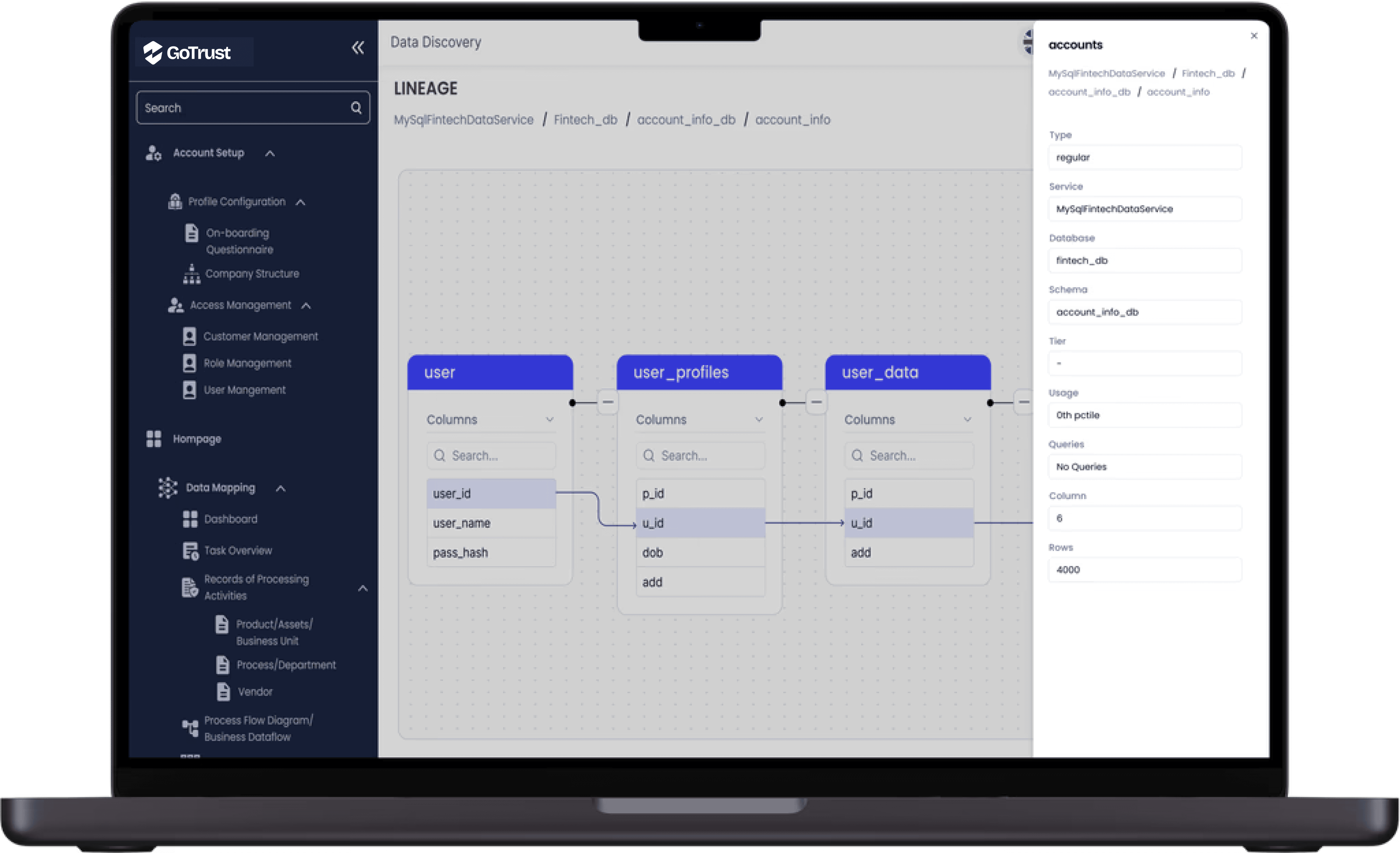 GoTrust empowers businesses with innovative data lineage solutions that unlock the full potential of their data journey. By seamlessly tracing how data flows through various systems, GoTrust ensures that your data remains not only accurate and trustworthy but also compliant. GoTrust will help you understand your data and confidently manage it.
